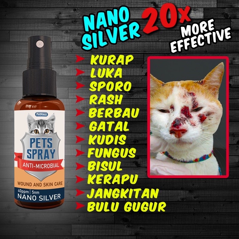 Ubat Kurap Luka Sporo Kucing Pets Spray Nano Silver 40ppm 5nm Kurap Kudis Sporo Gatal Rash Luka Kulit Kulat Fungus Shopee Malaysia
